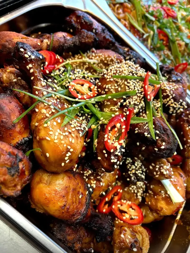 Broilerin koipinuijia ja srirachamajoneesia (M, G)
